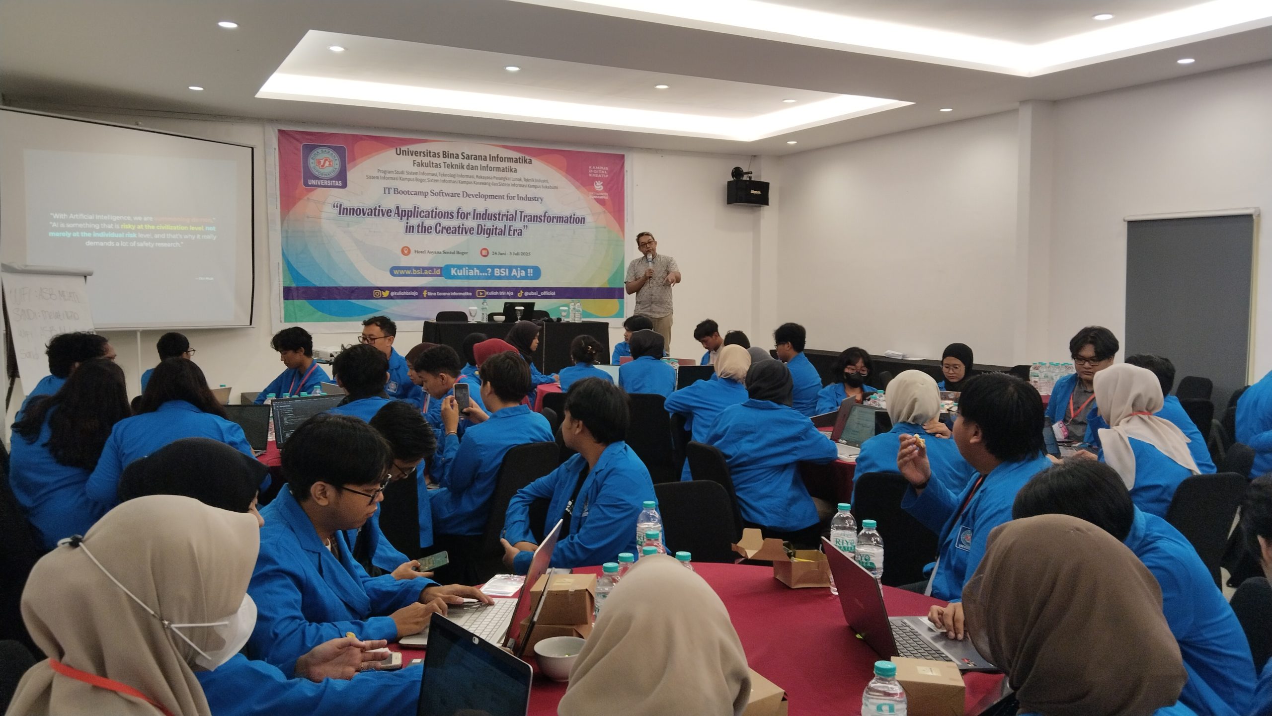 Karawang, Karawanghitz 2-3 Juli 2025 – Universitas Bina Sarana Informatika (UBSI) kembali membuktikan komitmennya dalam mempersiapkan mahasiswa menjadi lulusan yang tangguh, berdaya saing, dan adaptif terhadap perkembangan teknologi digital dengan menyelenggarakan kegiatan IT Bootcamp: Software Development for Industry. Kegiatan yang berlangsung selama dua hari ini diikuti oleh mahasiswa dari tiga kampus UBSI, yakni Karawang, Bogor, dan Sukabumi.